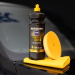 3b. Polerka Dual Action: użyć żółtego pada Cartec do maszyn orbitalnych (RF2126 dla ⌀150 mm). Rozprowadzić produkt na najniższych obrotach, następnie zwiększyć prędkość do 3500 – 4800 obr./min.
